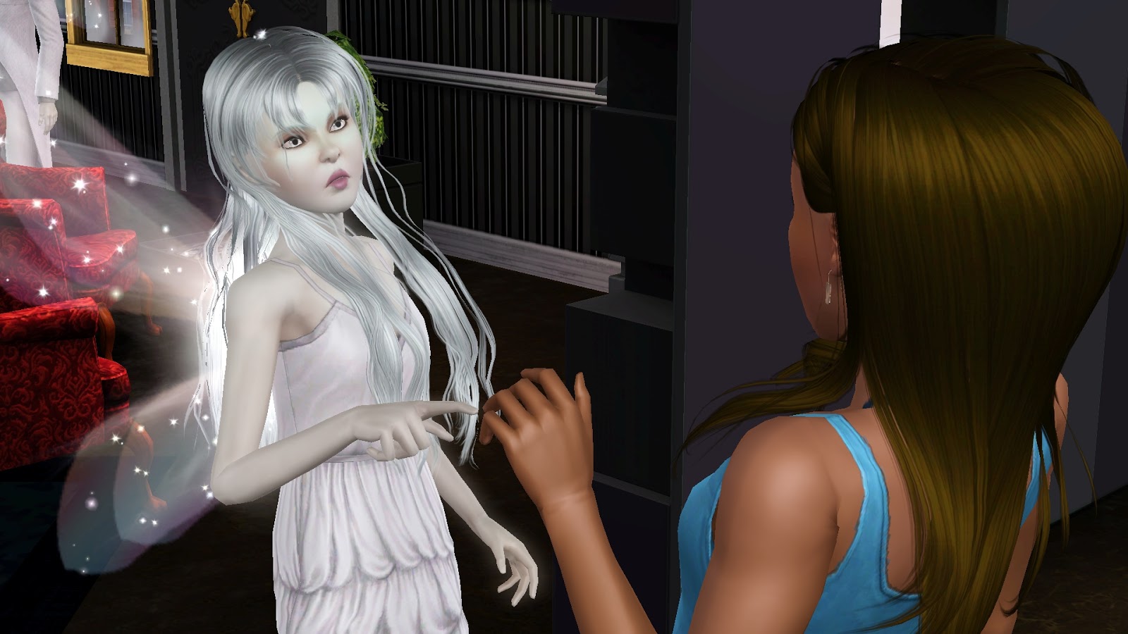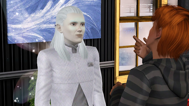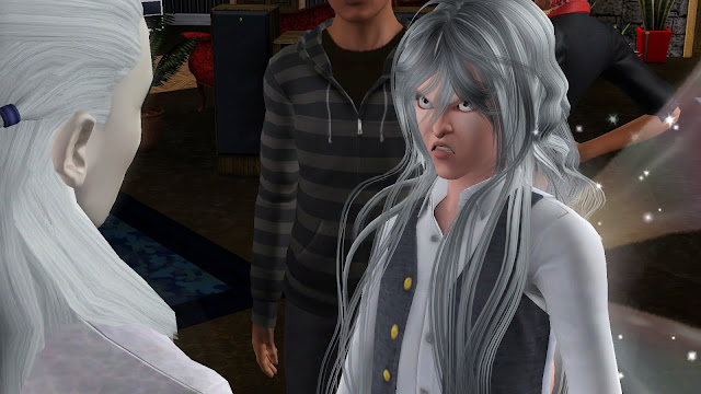 Där stod två älvor han kände alltför väl och pratade med Ofelia och Cory. Han smet osedd in på Esters rum för att varna henne innan han började ta tag i det stora problemet.