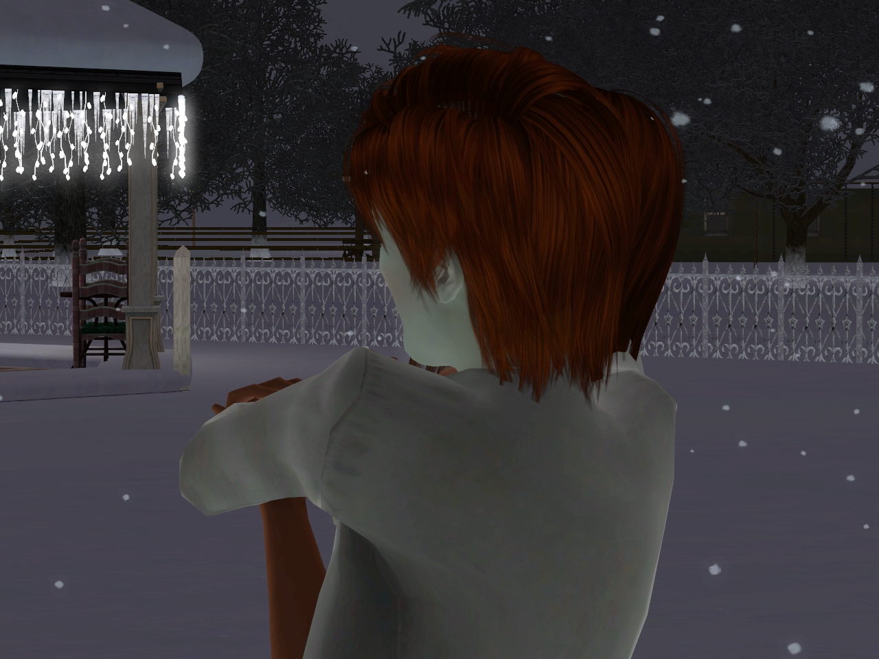 Rafael, Audrian och Marvin hade förflyttat sig in i det lilla huset på gården för att komma undan kylan men hade sökt sig ut igen nu när det gick att närma sig huset. Dom rörde sig sakta fram genom snön och stannade tvärt när Evelina kom gåendes mot dom. Hon var täckt av sot, svett och ränderna på hennes kinder visade tydligt att hon grät. Rafael drog Audrian tätt intill sig och Marvin gick försiktigt fram till Evelina.